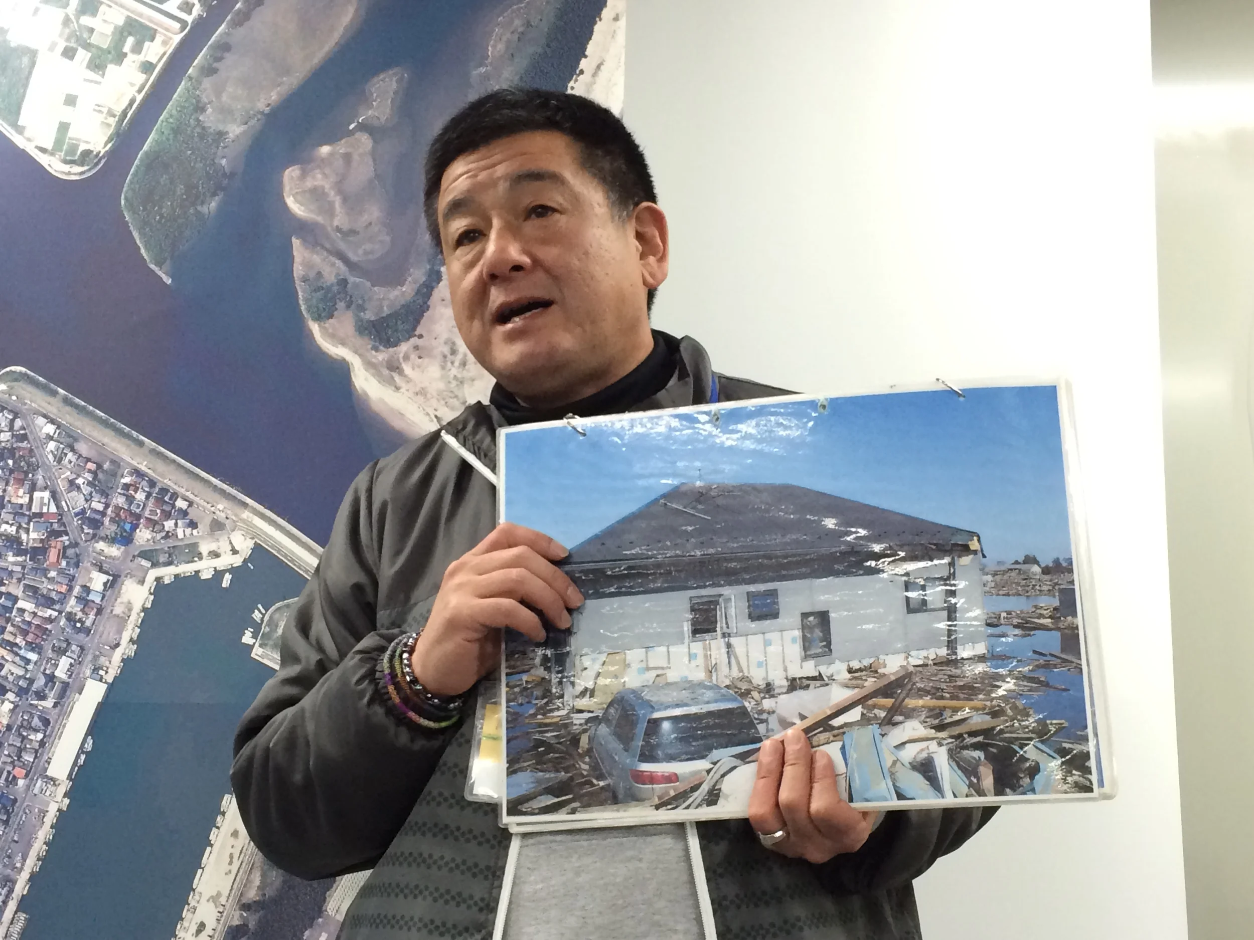 Mr. Nakanuma is a simple and happy man with a great big voice. His whole family, including his parents, lived together in a two-storey house. On the day of the disaster, he instructed his eldest son to take the two elders to the evacuation site while him and his wife stayed to pick up the things that fell during the earthquake. Much to his surprise, an emergency call was given that a tsunami was fast approaching.